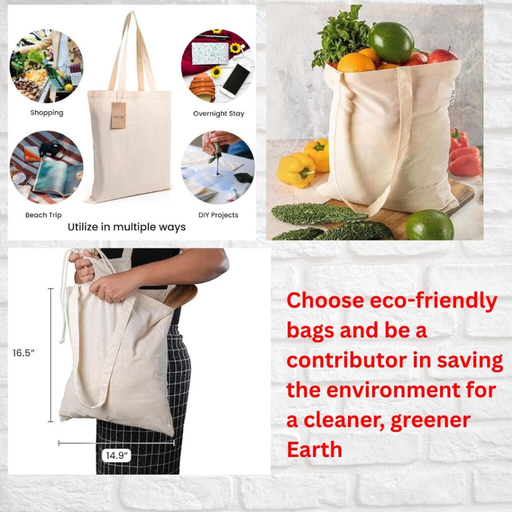 Product Description: These Eono cotton tote bags are simple, strong, and reusable bags made from 100% natural cotton. The pack