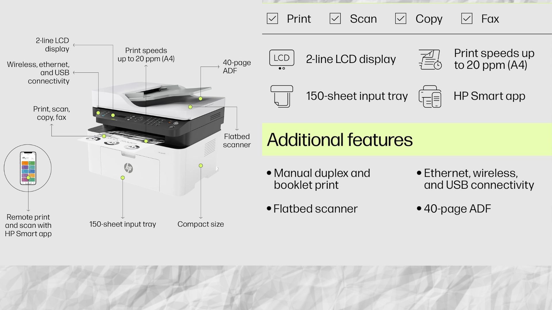 It is a HP Laser MFP 1188fnw and a wireless printer.